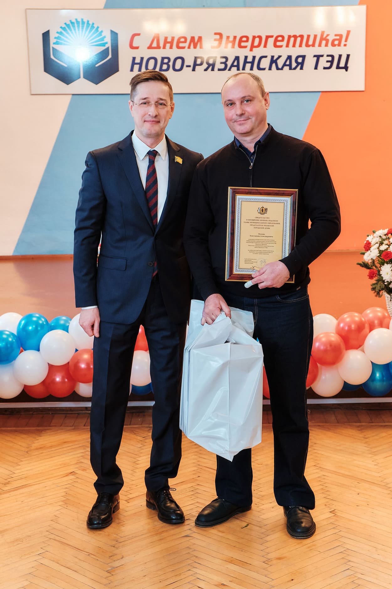 На торжественном собрании более 50 сотрудников станции были награждены знаками, ценными подарками, благодарностями и почетными грамотами Министерства энергетики РФ, губернатора Рязанской области, министерства ТЭК и ЖКХ Рязанской области, областной Думы и Рязанской городской Думы, Электропрофсоюза, наградами Ново-Рязанской ТЭЦ.