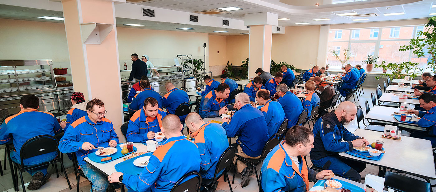 Увеличен штат поваров, которым стало необходимо обслуживать вахтовый персонал, работающий в круглосуточном режиме, в том числе в выходные и праздничные дни. Количество посадочных мест в столовой увеличено в 3 раза – до 140. Это была по сути рационализация производственного процесса- сокращение временных затрат работников в обеденный перерыв и повышение уровня социальных услуг для коллектива. Около 300 человек, включая вахтовый персонал, обслуживаются очень быстро.