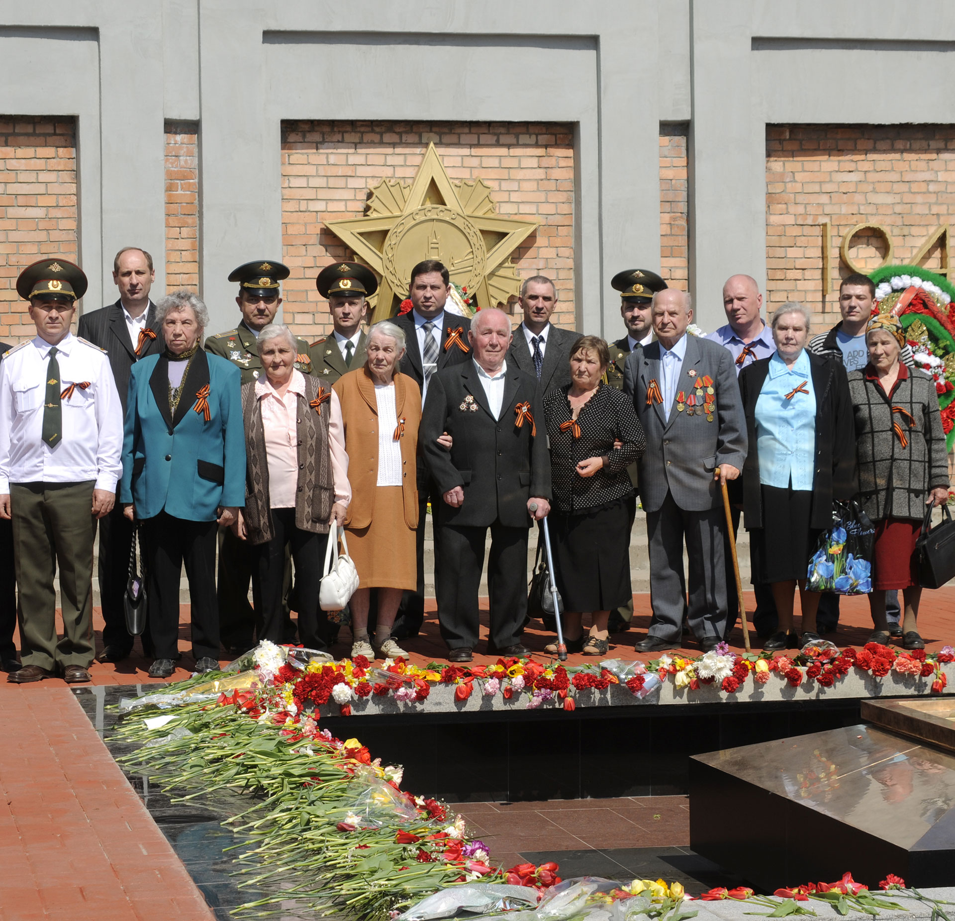 Группа ветеранов ТЭЦ в День Победы на мемориале воинам, погибшим в Великой Отечественной войне